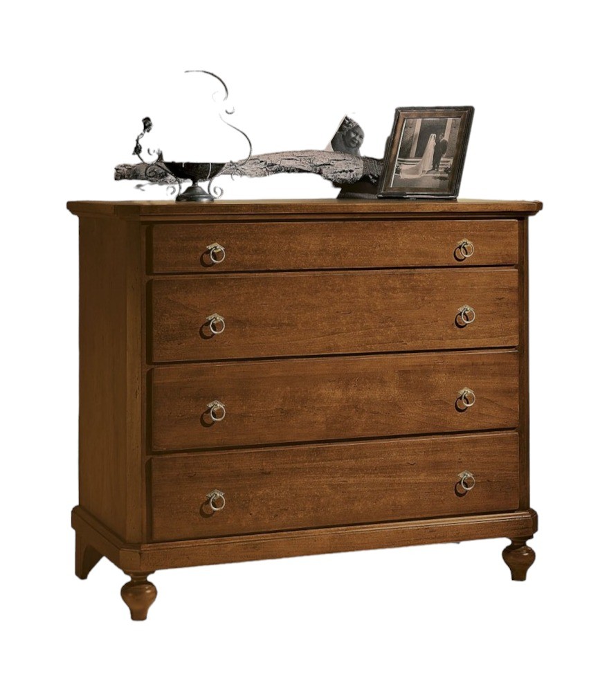 Cassettiera classica 4 cassetti legno massello tinta noce 119x52x101 (970)
