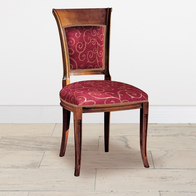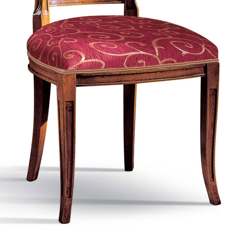 Sedia in legno ideale per chi ama arredare in stile classico la casa, elegante e versatile da posizionare in qualsiasi stanza . Sedia Caratterizzata da intagli realizzati a mano, schienale alto e sagomato, imbottita per garantire un' esperienza di seduta confortevole e unica. Complemento di arredo che non può mancare nella zona living e che si contraddistingue per la sua originalità.