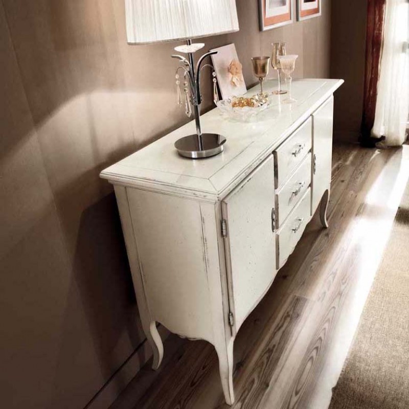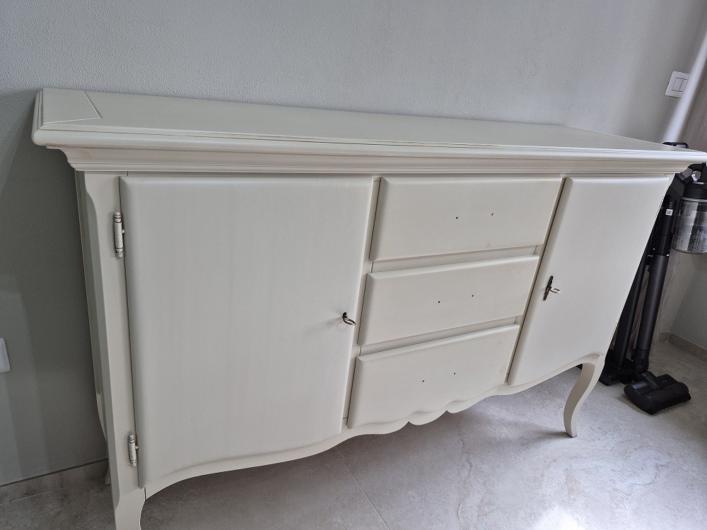 Credenza 2 porte 3 cassetti legno shabby bianco 150X45x96