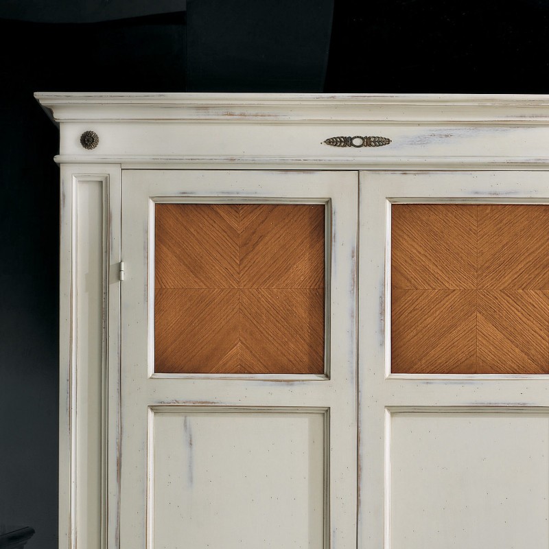 Finitura pannelli intarsiati - schienale - cassetti - ripiani: noce biondo