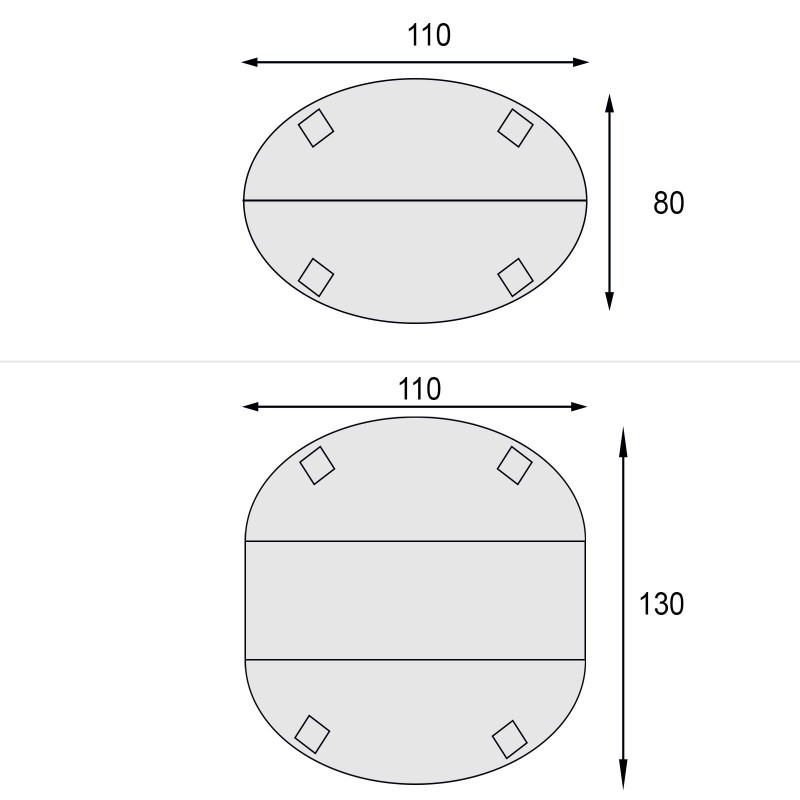 - Misura aperto con una allunga cm 130 x 110: spazio per 6 persone