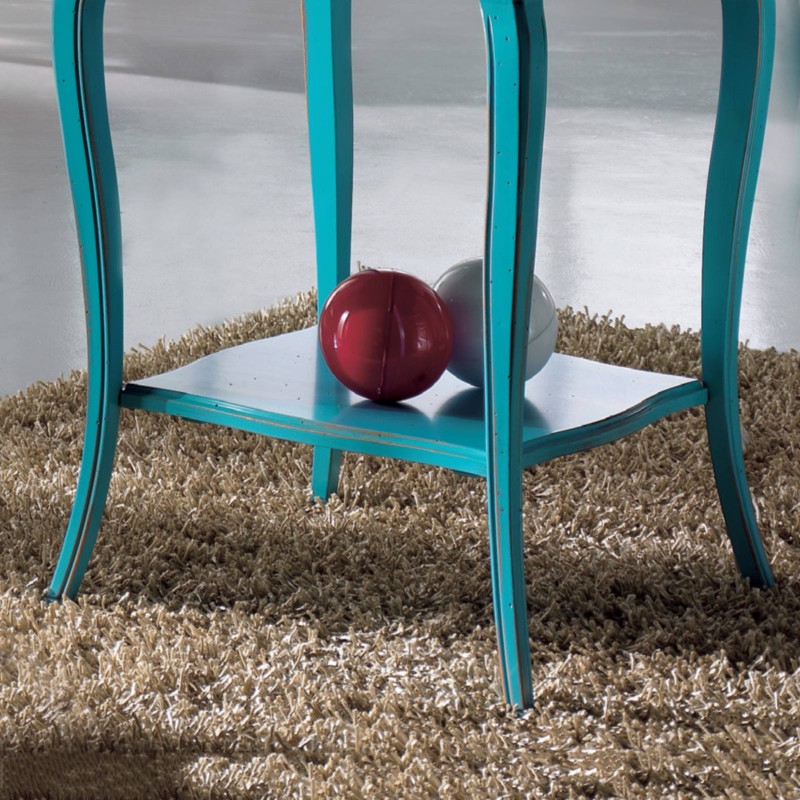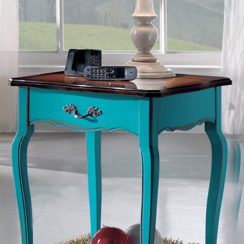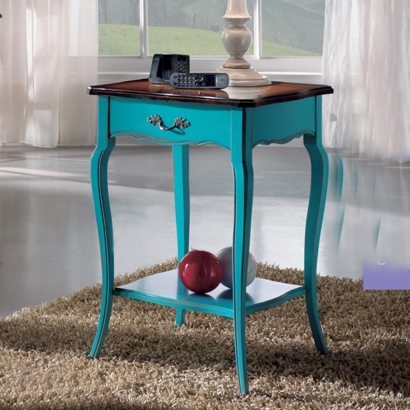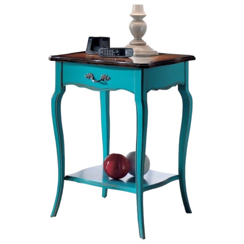 Consolle porta lampada 1 cassetto legno azzurro shabby bicolore 52X52x78