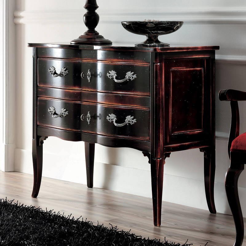 Cassettiera 2 cassetti Legno nero Shabby chic 92x44x79
