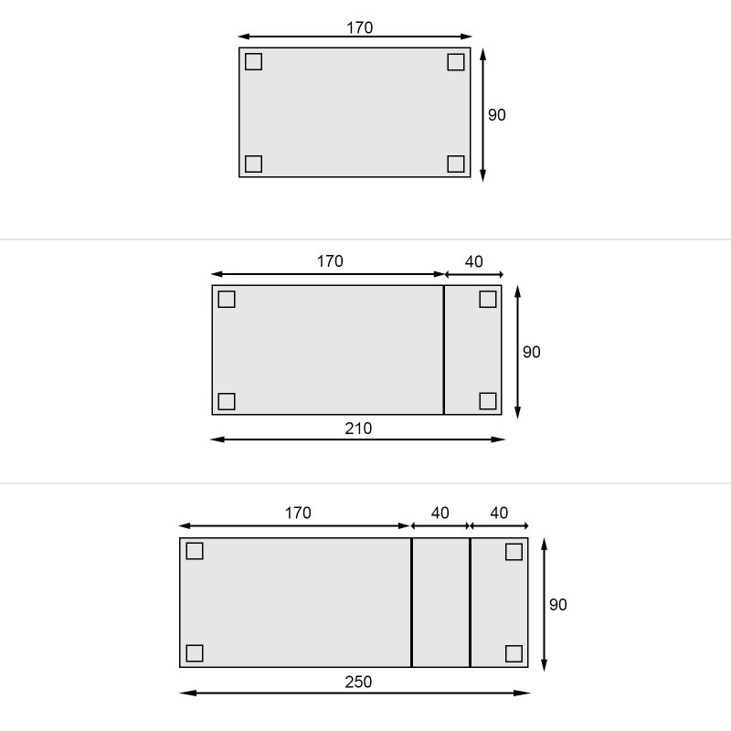 - Misura aperto con una allunga cm 210 x 90: spazio per 8 persone