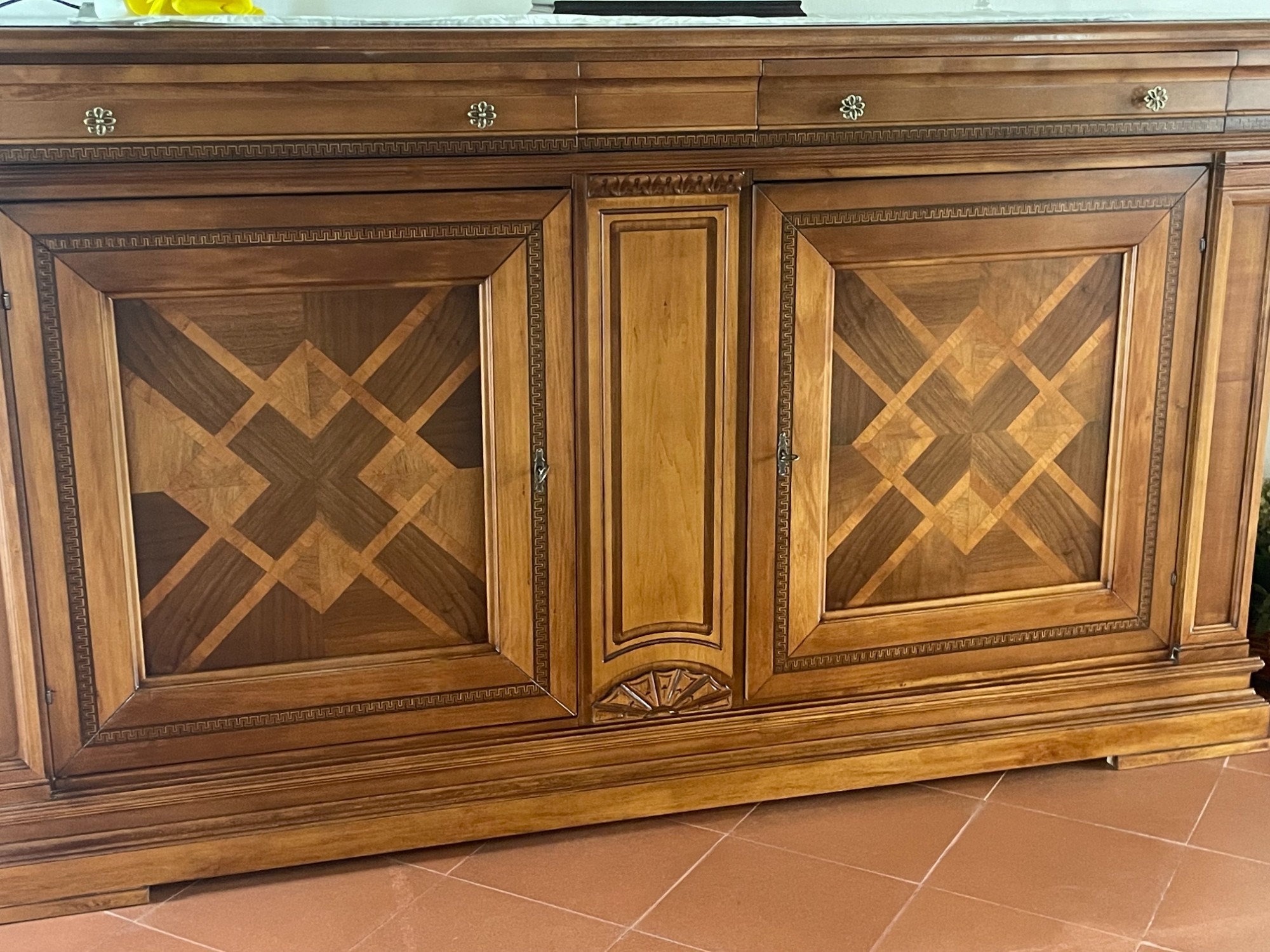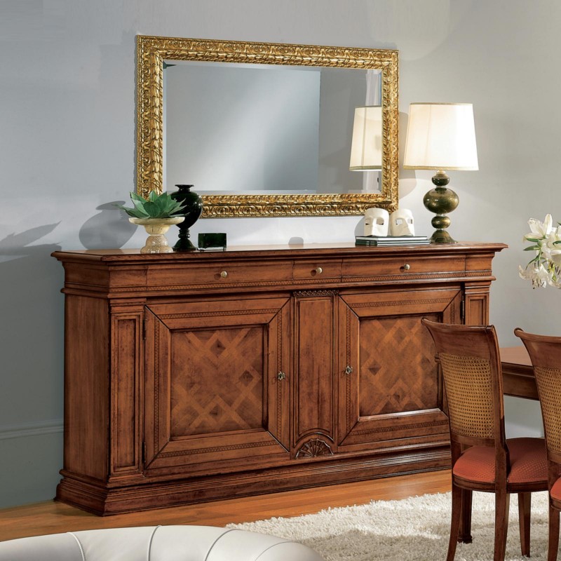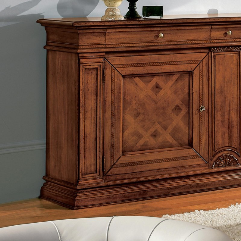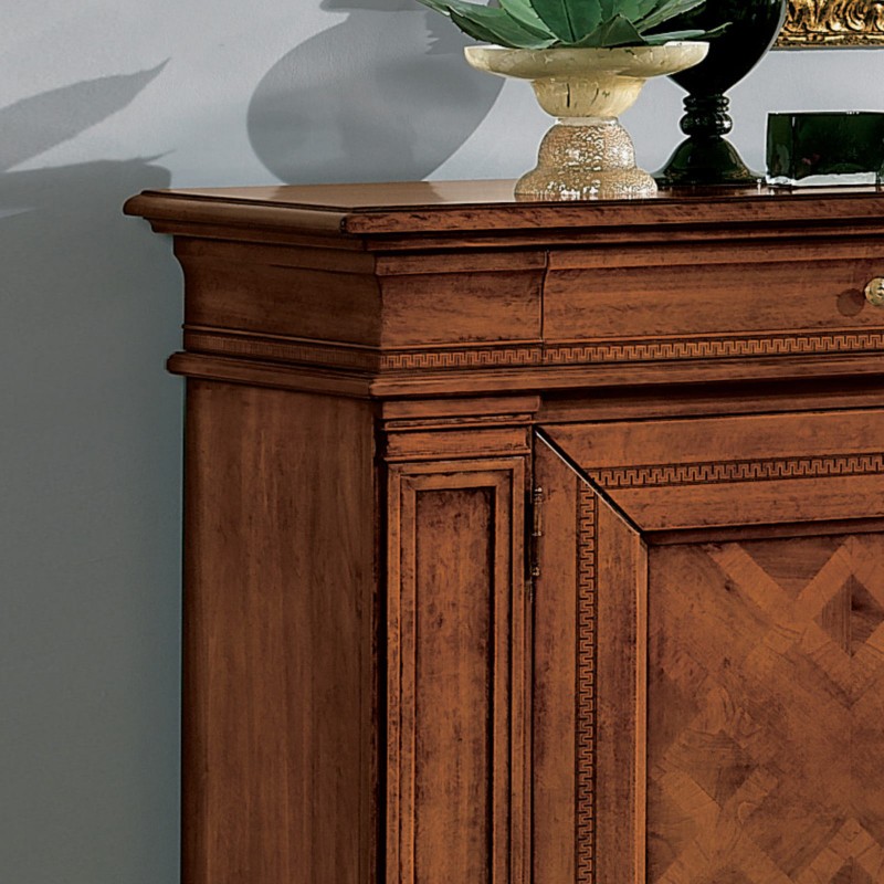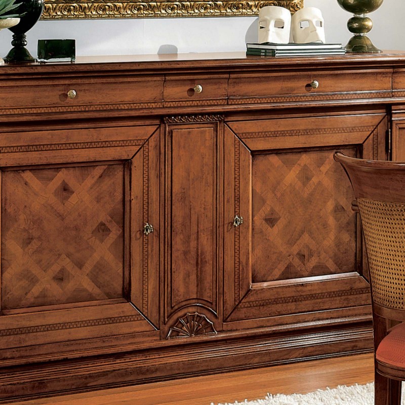 Credenza classica 2 porte 3 cassetti legno bassano intarsio 215X56x117