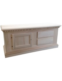 Porta tv shabby costruito in legno massello con angoli a becco di civetta e zoccolo a terra. Mobile porta tv con due cassetti posizionati sotto il piano d'appoggio del televisore e una porta battente per riporre libri, decoder e oggetti da collezione. Unico nel suo genere con l'intaglio sotto piano detta( greca) creando un bellissimo contrasto con la verniciatura tinta noce, dando un tocco a un' atmosfera dallo stile classico.