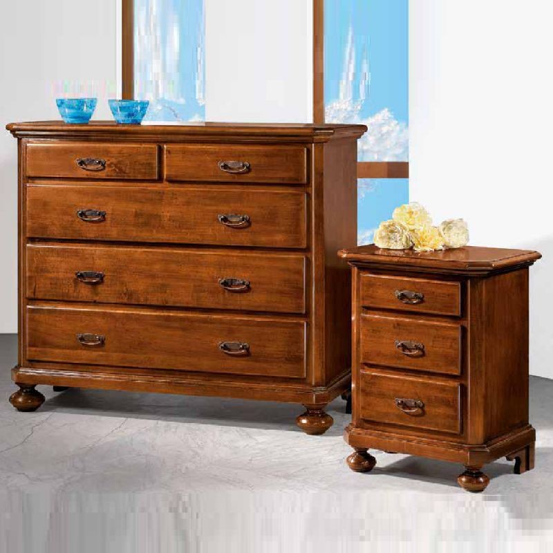 Gruppo 1 Cassettiera 2 Comodini legno arte povera tinta noce