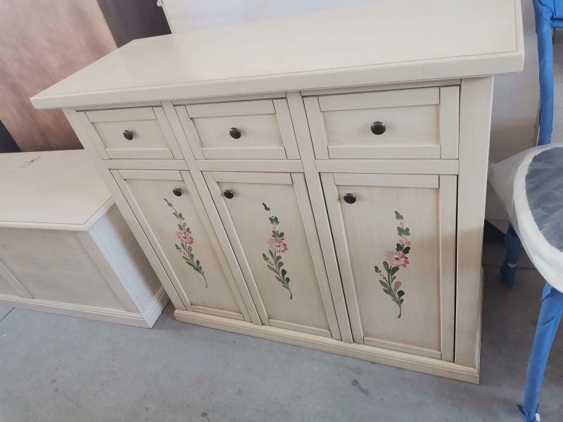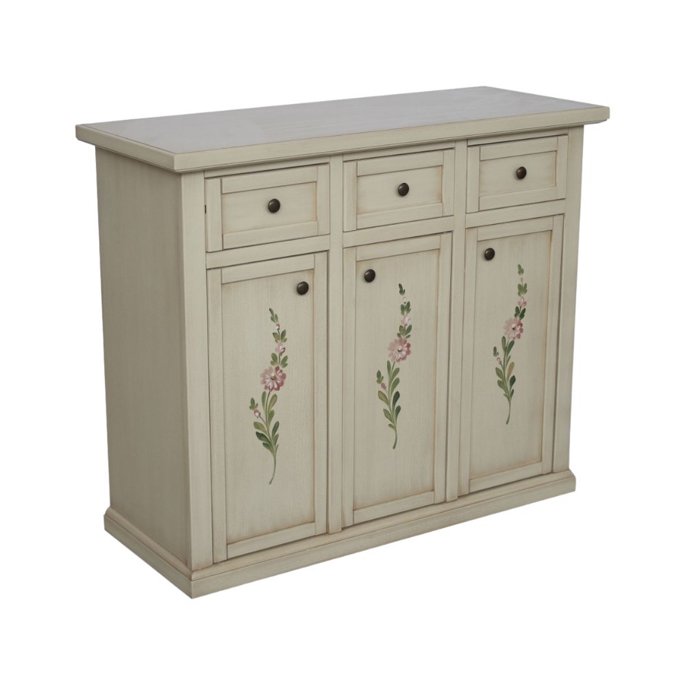 Credenza 3 porte 3 cassetti shabby avorio anticato decori 100x39x85