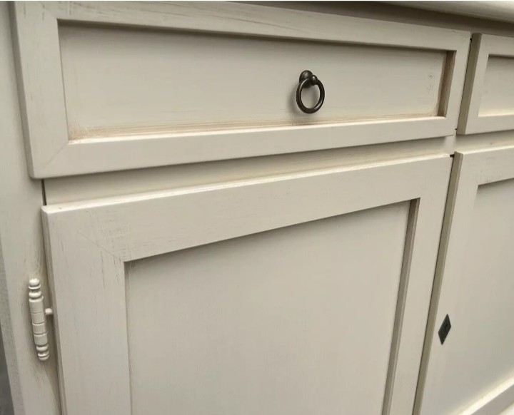 Credenza in stile shabby dalle linee classiche e tradizionali ma allo stesso tempo funzionale e capiente . Grazie al suo ripiano interno ti permette di suddividere piatti, bicchieri e tazzine, sfruttando anche i due cassetti per riporre tovaglie e accessori per la casa. Ideale da posizionare all'ingresso della casa o nella zona living ottimizzando ogni minimo spazio grazie alle sue modeste dimensioni, aggiungendo stile e eleganza alla stanza.