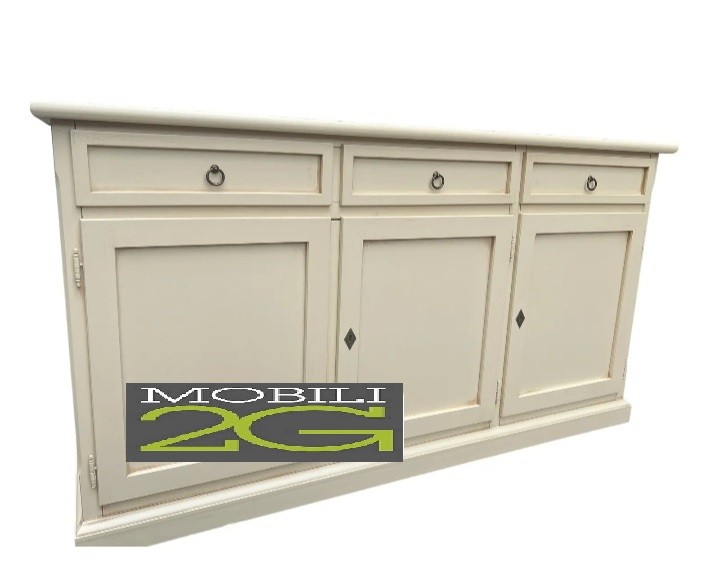 Madia Credenza Shabby Chic In Legno 3 Porte Avorio Patinato 156x42x85