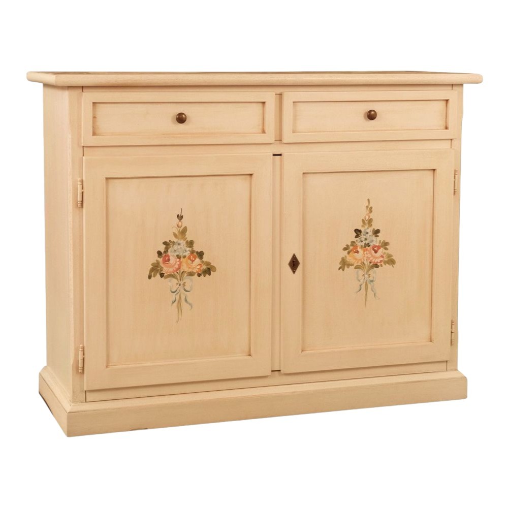 Credenza 2 Ante legno avorio anticato decorata 105X42X85