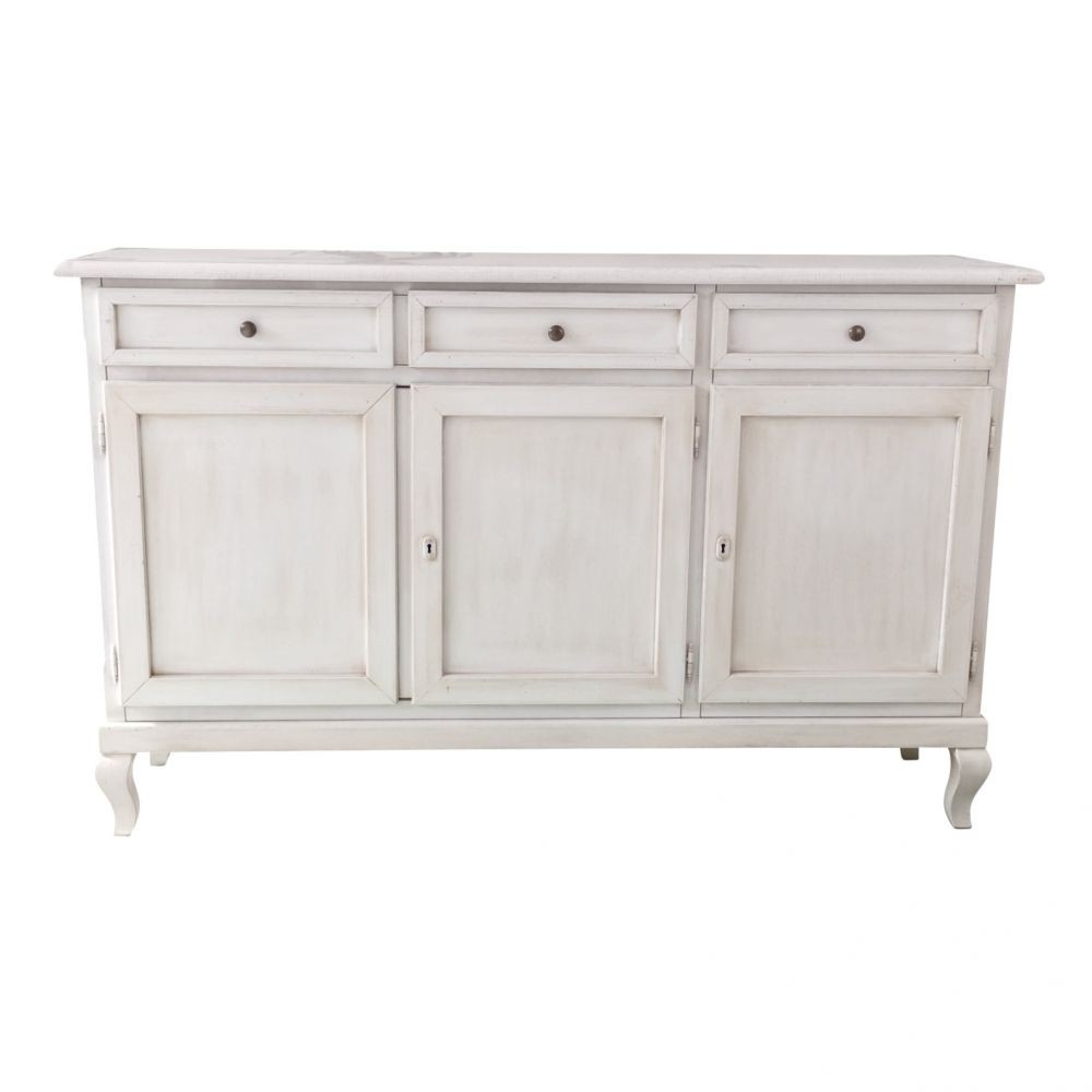 Madia credenza 3 porte legno shabby bianco anticato 155x45x98
