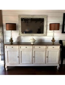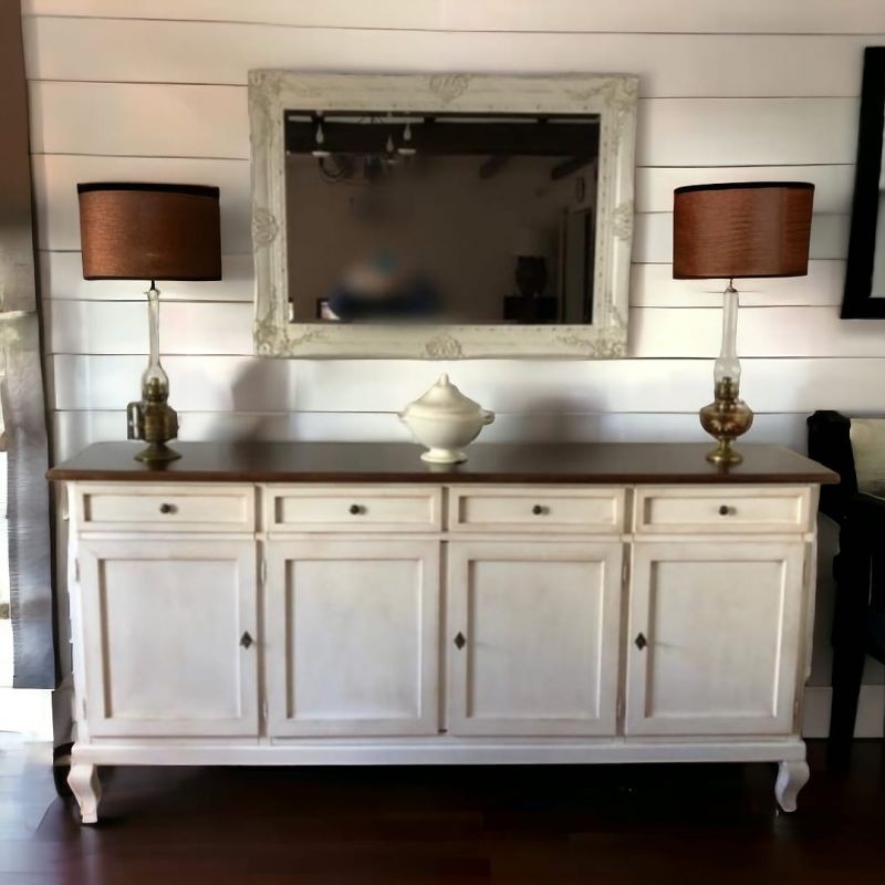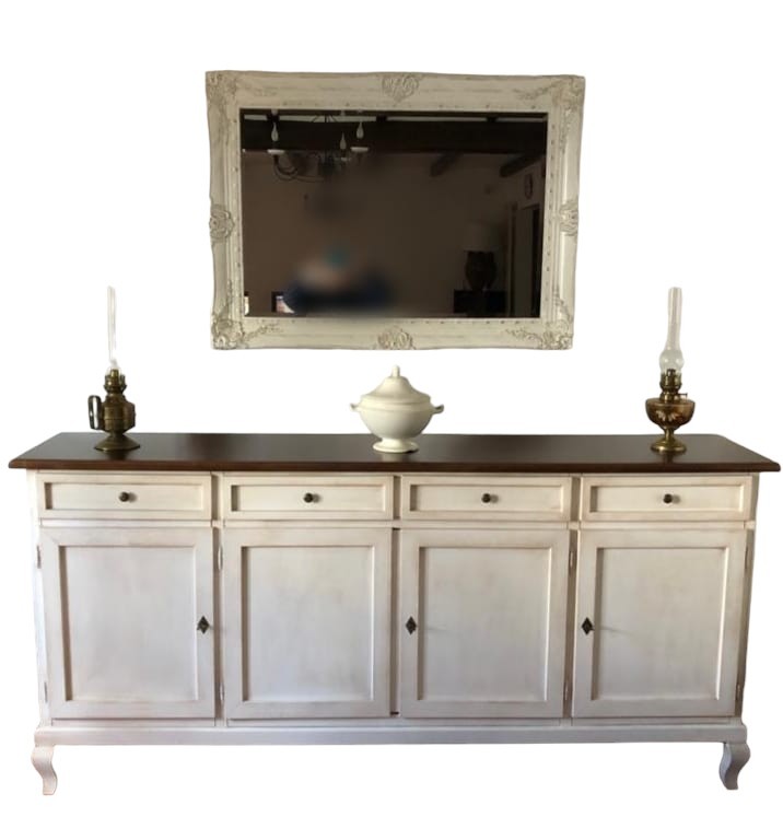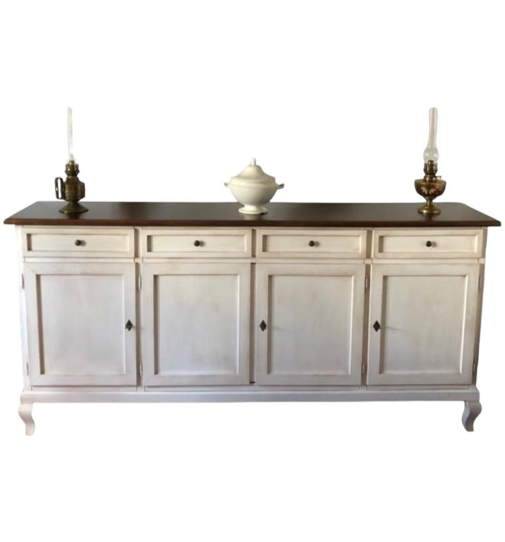 Madia credenza 4 porte legno shabby bianco anticato e noce 205x45x98