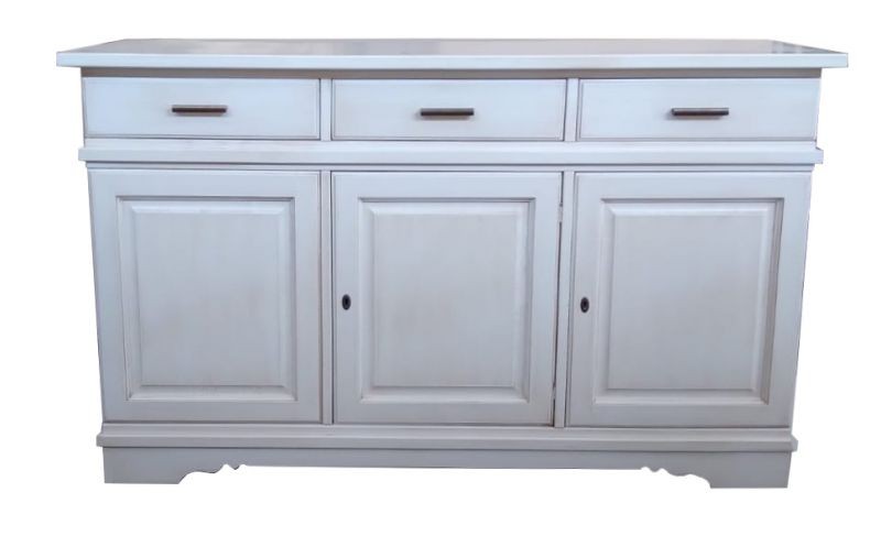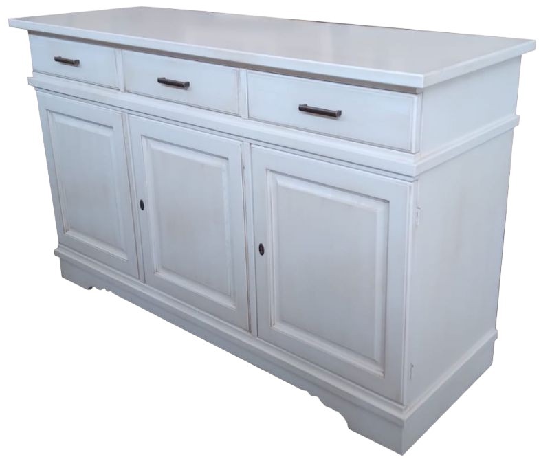 Credenza madia 3 porte legno shabby bianco anticato 155x52x94