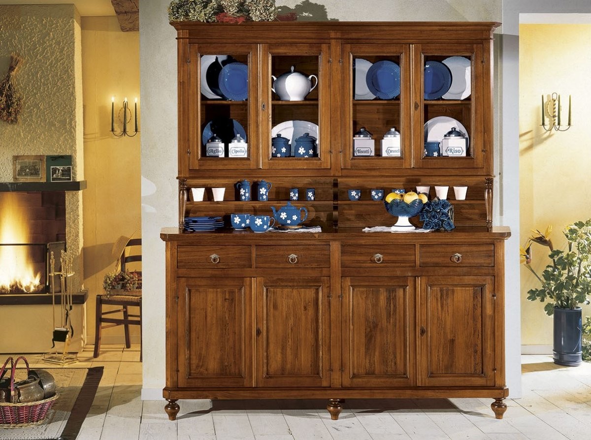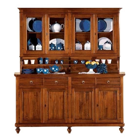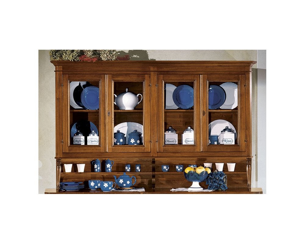 Cristalliera classica 4 porte legno tinta noce 198X50X227