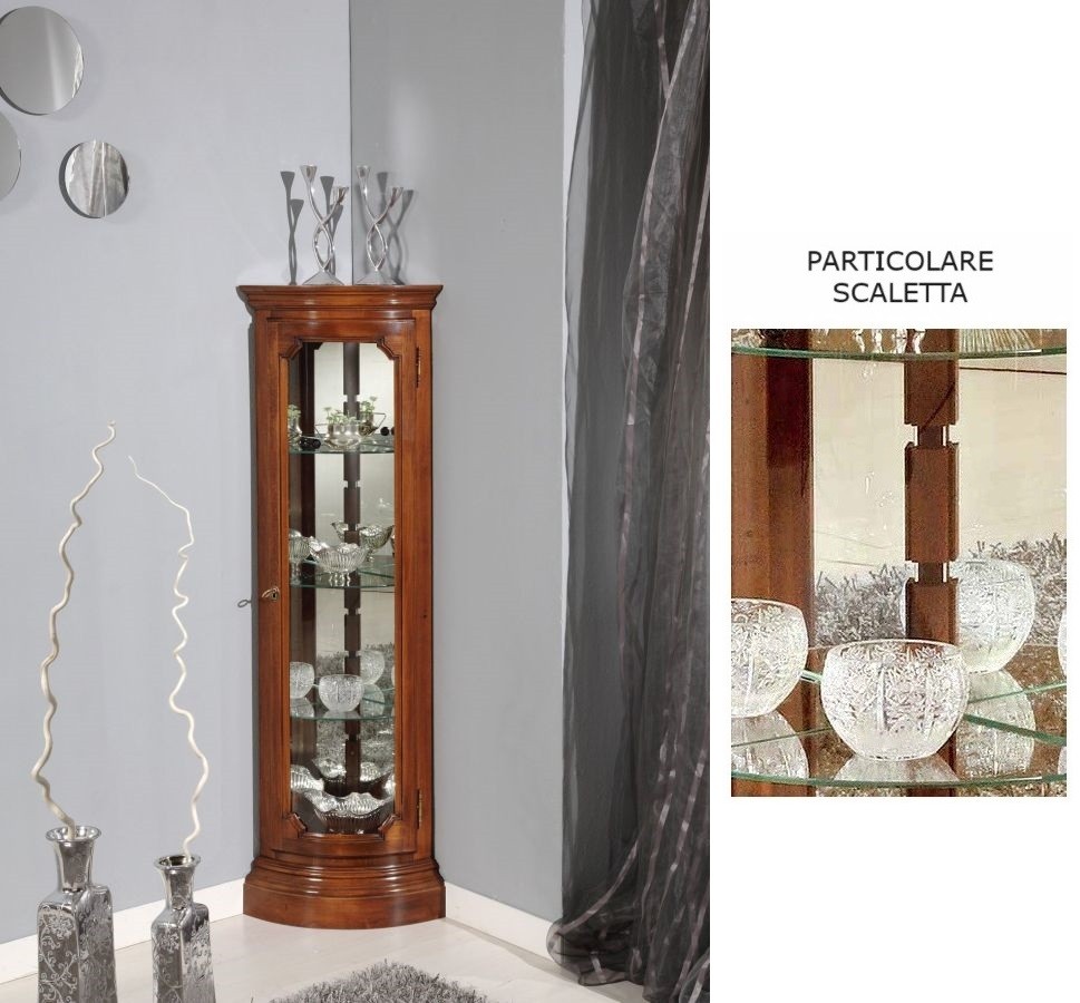 Vetrina ad angolo vetro curvo classica Legno tinta noce 33X33X138