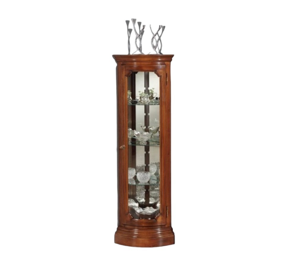 Vetrina ad angolo adatta per esporre soprammobili o servizi di bicchieri. Elemento d' arredo funzionale e spazioso che ti permetterà di risolvere i problemi di spazio trasformando ogni angolo della casa in maniera più funzionale. aggiungendo un tocco di classe grazie al suo vetro curvato creando un' impatto estetico unico e originale.