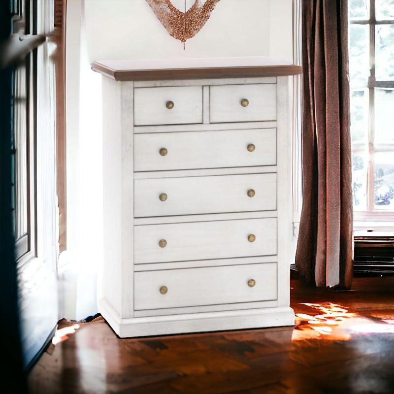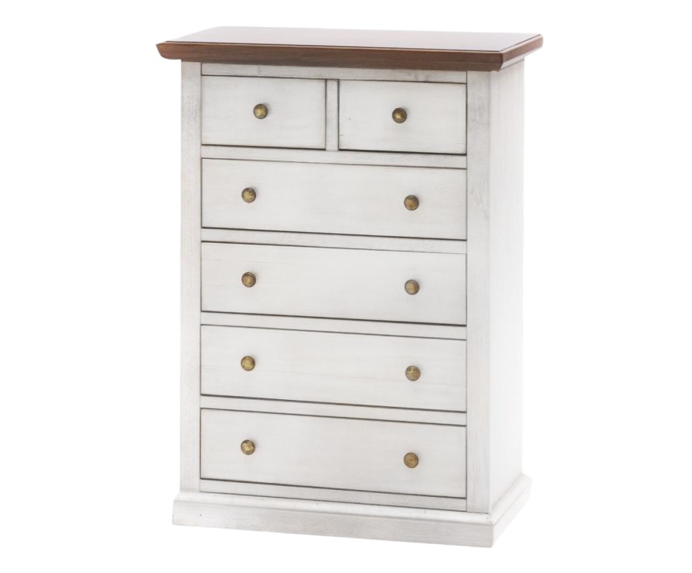 Cassettiera 6 cassetti in legno shabby bianco anticato noce 62x37X93