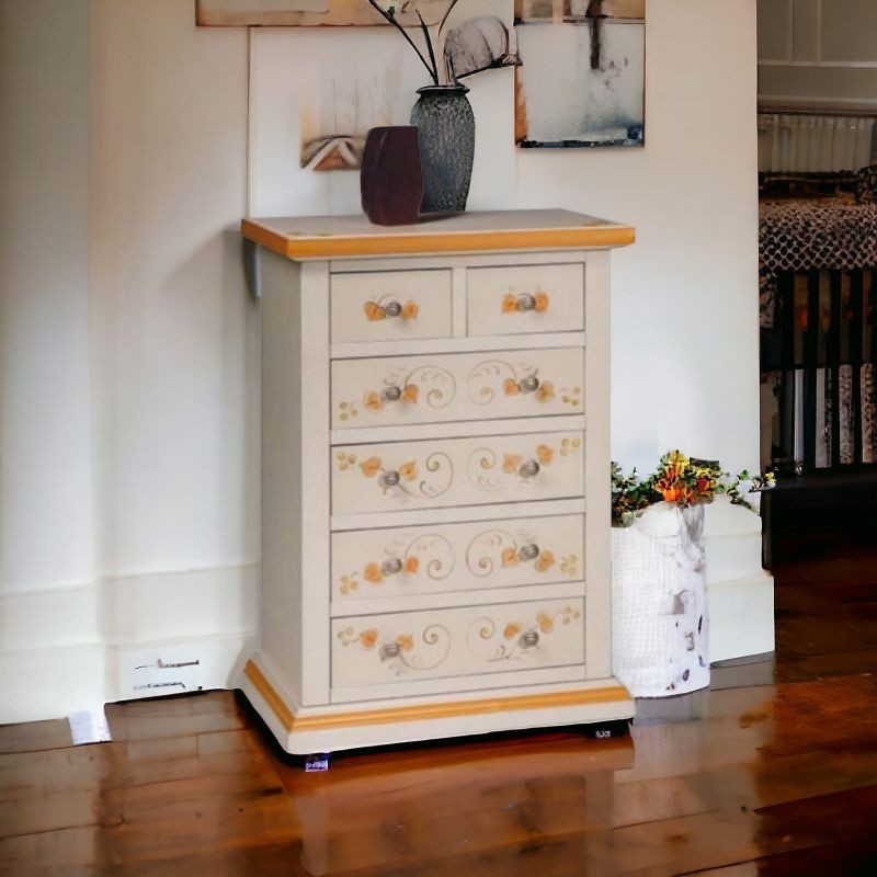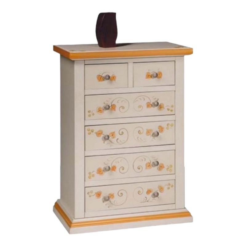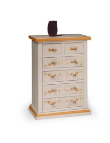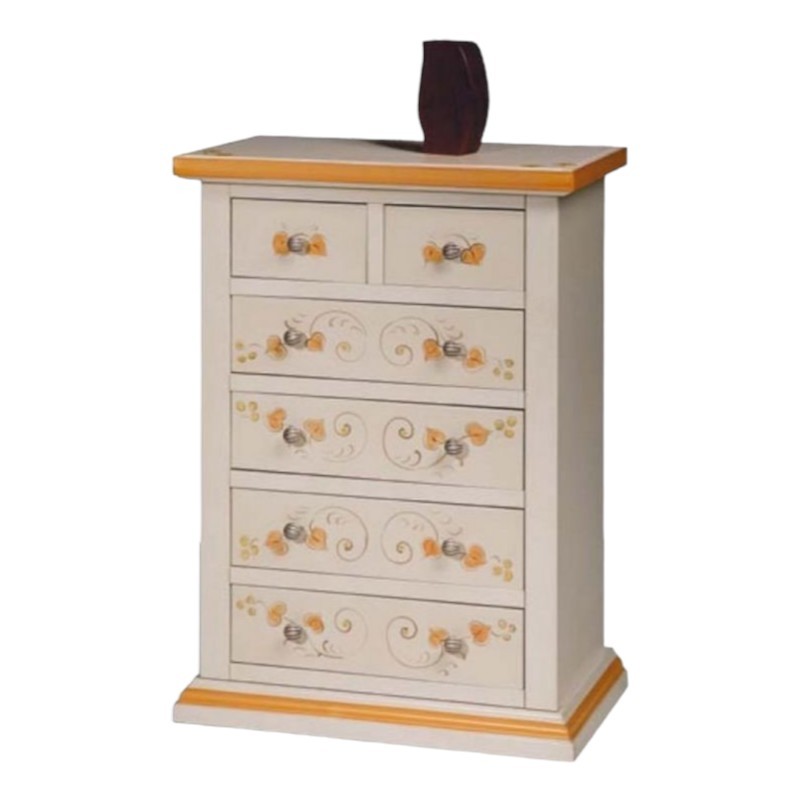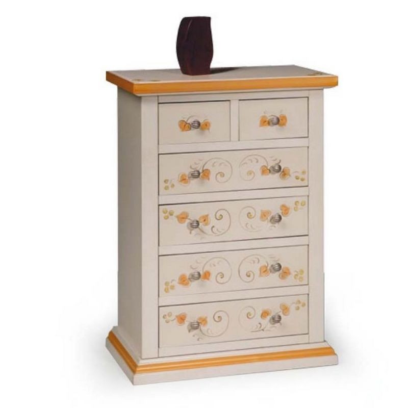 Cassettiera 6 cassetti in legno shabby bianco anticato decorato 62x37X93