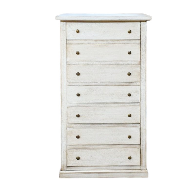 Cassettiera 7 cassetti in legno shabby bianco anticato 70x40X120