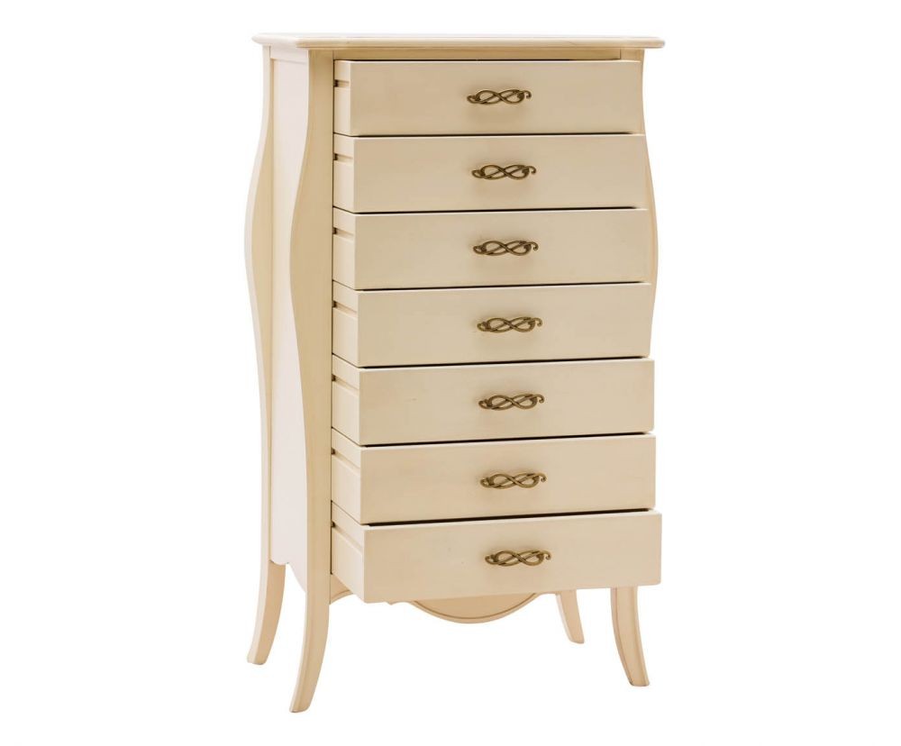 Cassettiera 7 cassetti in legno shabby avorio L.80 x P.47 H.138