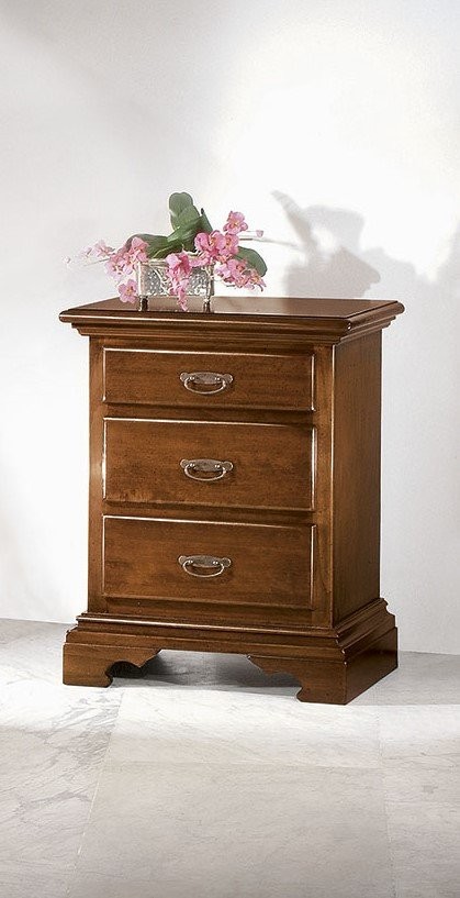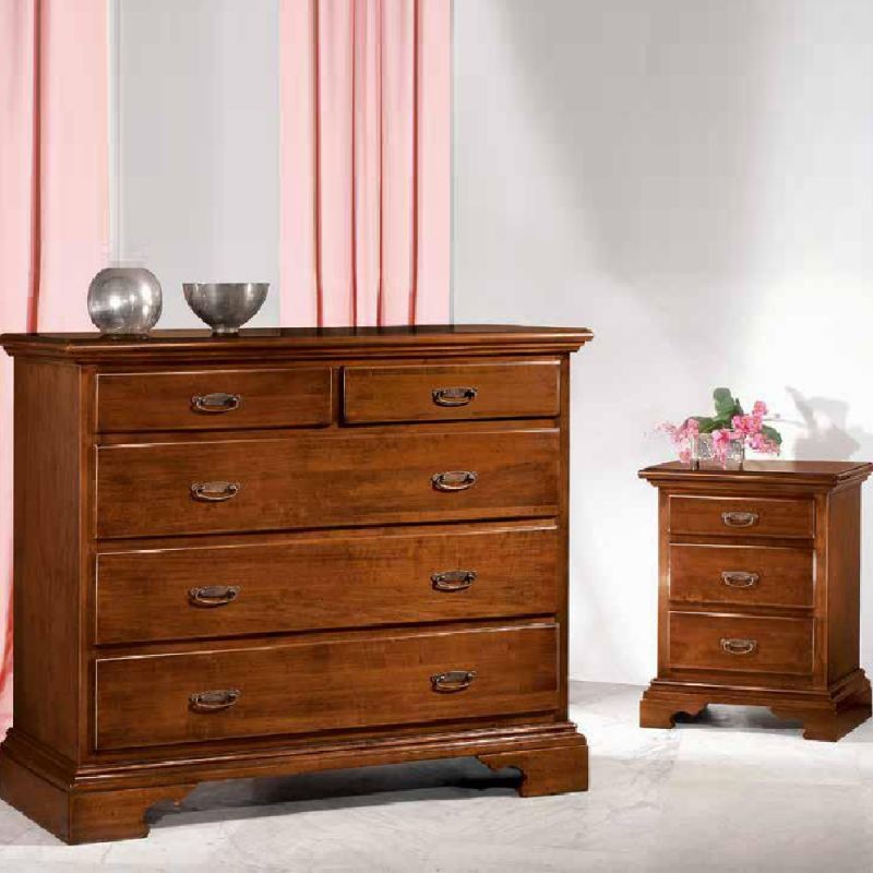 Gruppo cassettiera e Comodini costruiti in legno con angoli smussati e zoccolo sagomato. Cassettiera e comodini dotati di cassetti per riporre all'occorrenza biancheria intima e oggetti. Trovano facilmente posto nella zona notte proteggendo con i suoi cassetti il suo contenuto all'interno. Unici nel loro genere con la sue particolari maniglie e le sue linee classiche dando un tocco a un' atmosfera dallo stile d'altri tempi.