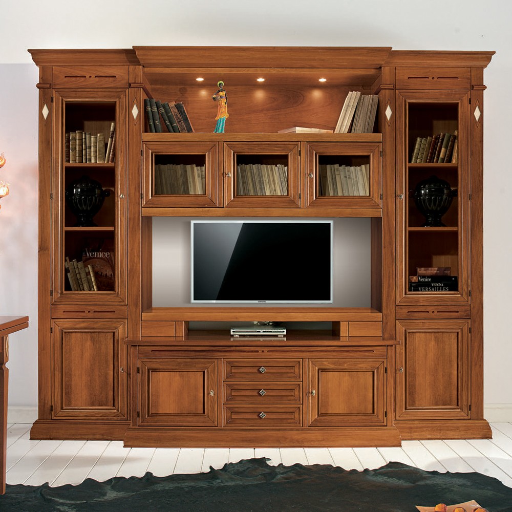 Parete attrezzata classica in legno noce bassano 275x36/60x230