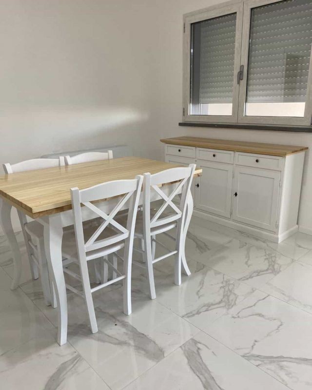 Composizione soggiorno 1 tavolo con sedie 1 credenza legno shabby bicolore