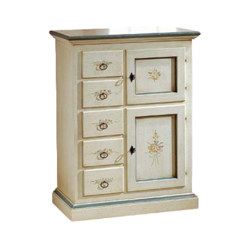 Credenza dispensa 2 porte 5 cassetti shabby bianco patinato decori 75x40x100 (1329)