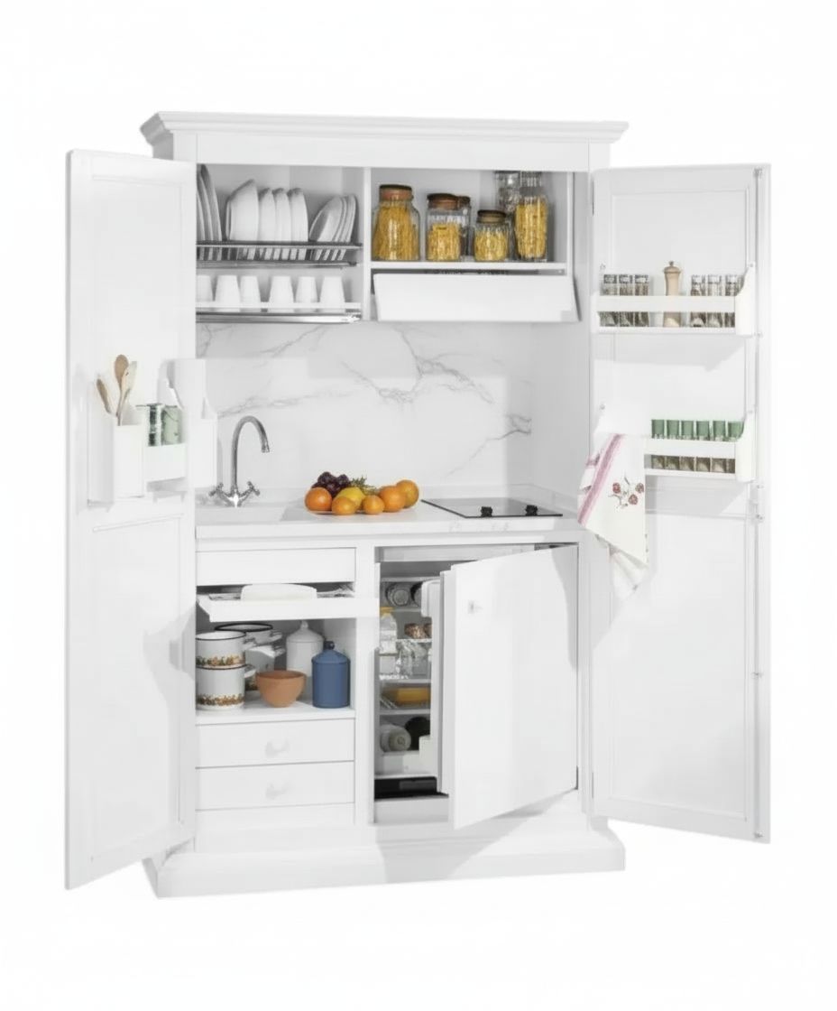 Armadio cucina arte povera legno 2 porte bianco 135X70X210