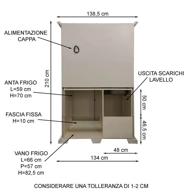 ARMADIO-CUCINA IN LEGNO 2 PORTE SMONTATO MISURE L.135 P.70 H.210(ELETTRODOMESTICI NON INCLUSI)