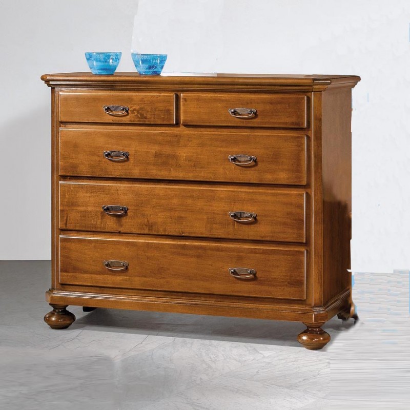 Cassettiera classica 5 cassetti legno tinta noce 116x51x101 (452)