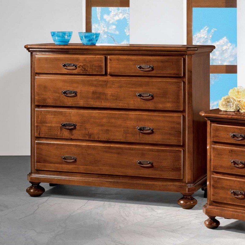 MOBILI 2G - Cassettiera classica 5 cassetti legno tinta noce 116x51x101