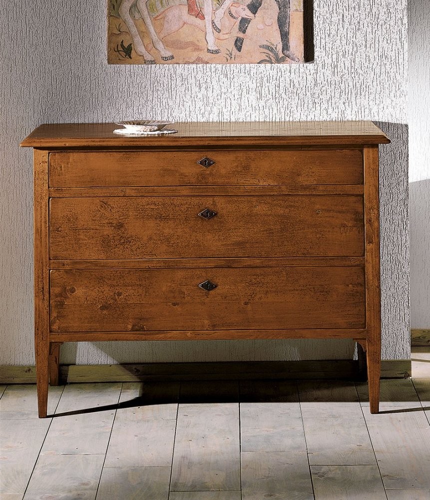 MOBILI 2G - Cassettiera classica 3 cassetti legno grezzo 123x56x92