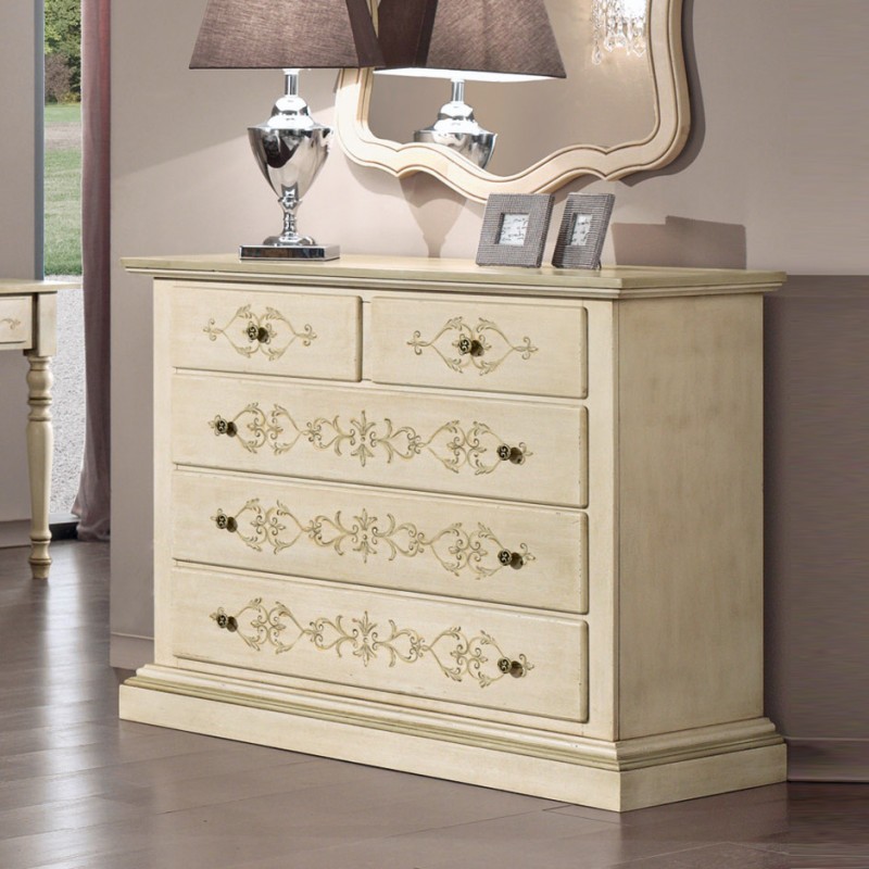 Gruppo 1 Cassettiera 2 Comodini legno classico avorio shabby