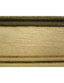 particolare laccatura artigianale con fondo colore avorio ed ornamenti colore verde, anticati con patine.