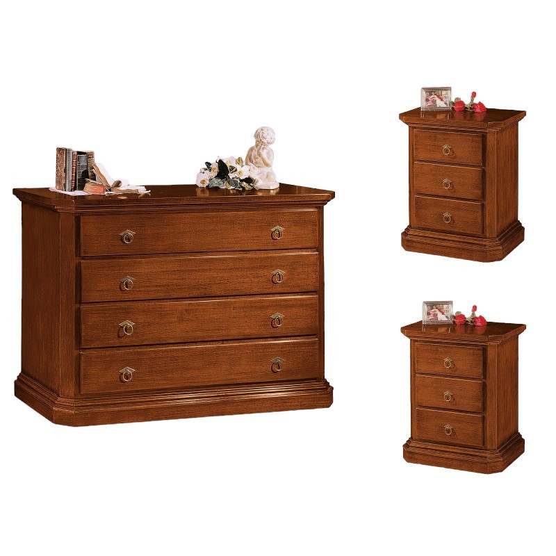 Gruppo 1 Cassettiera 2 Comodini legno classico tinta noce