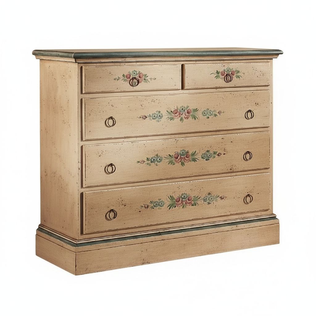 Cassettiera arte povera 5 cassetti legno shabby avorio 117x51x101 (1429)