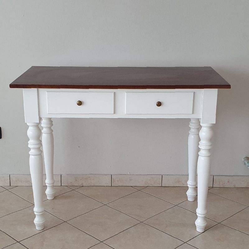 Scrivania 2 cassetti bicolore bianco noce tornita 105x55x78