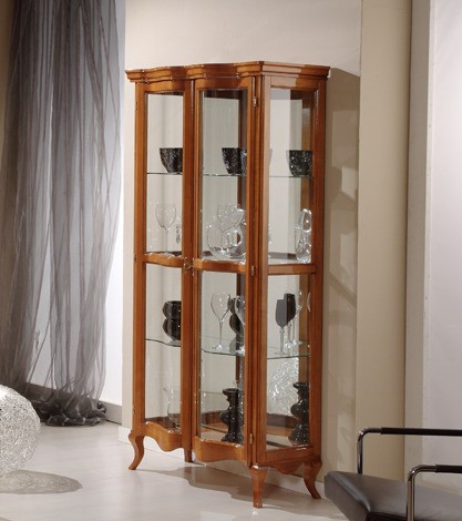 Vetrina classica vetro curvo Legno tinta noce scuro 89X44X186