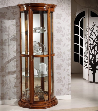 Vetrina classica vetro curvo Legno tinta noce 78X44X195