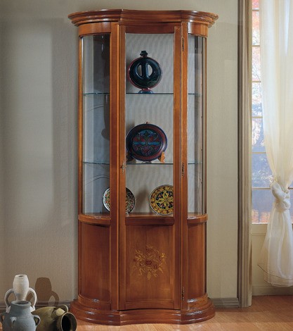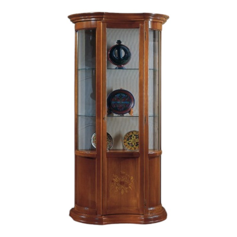Vetrina classica vetro curvo Legno tinta noce intarsio 90X33X196