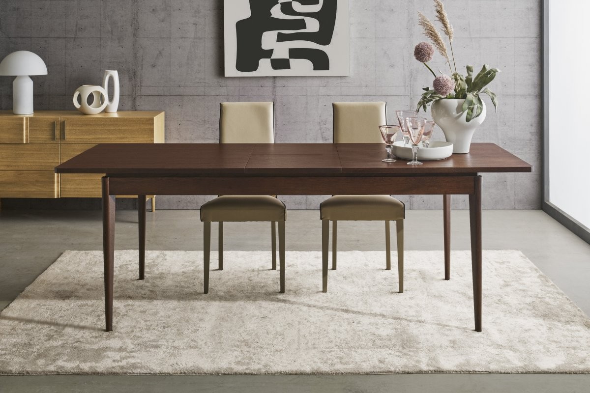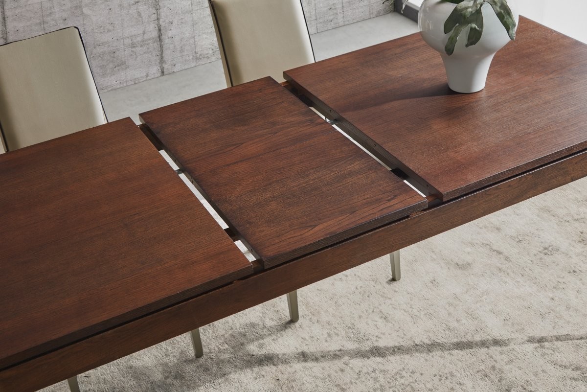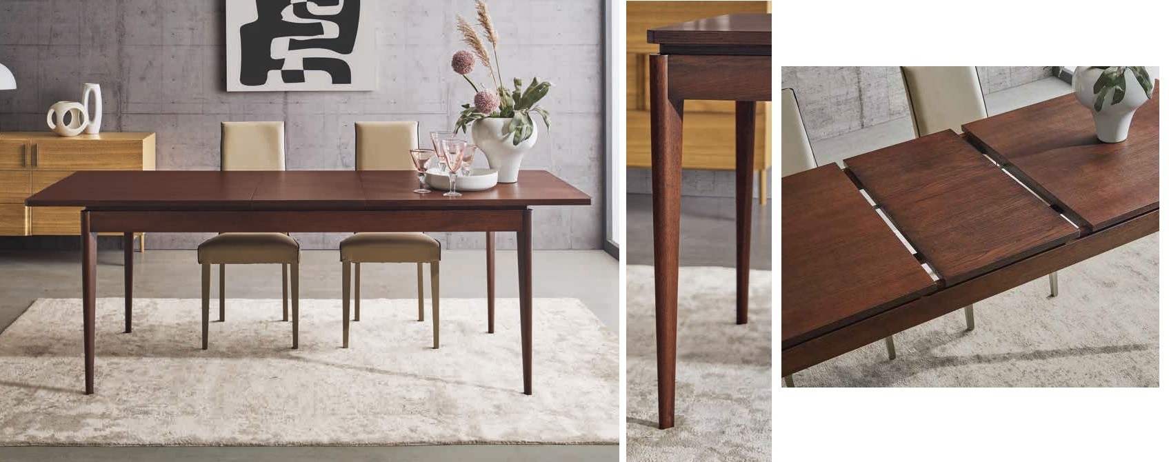 Tavolo costruito in legno di rovere rendendo il mobile solido e allo stesso tempo elegante. Piano rettangolare con gambe sagomate. Dotato di 1 allunga da 45 cm con un' apertura centrale che ti permetterà di allungare il tavolo fino ad una misura massima di 225 cm. Elemento di arredo che conferisce un tocco di raffinatezza e calore grazie alla sua eleganza intramontabile che solo il rovere può offrire.