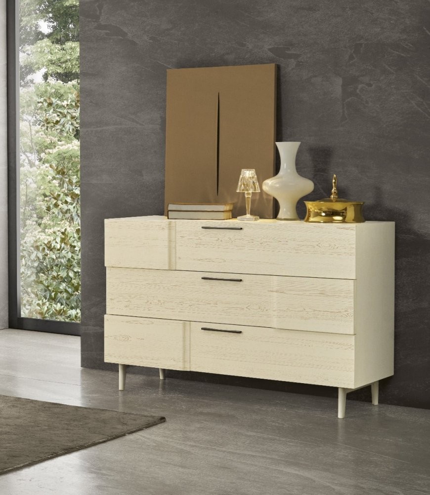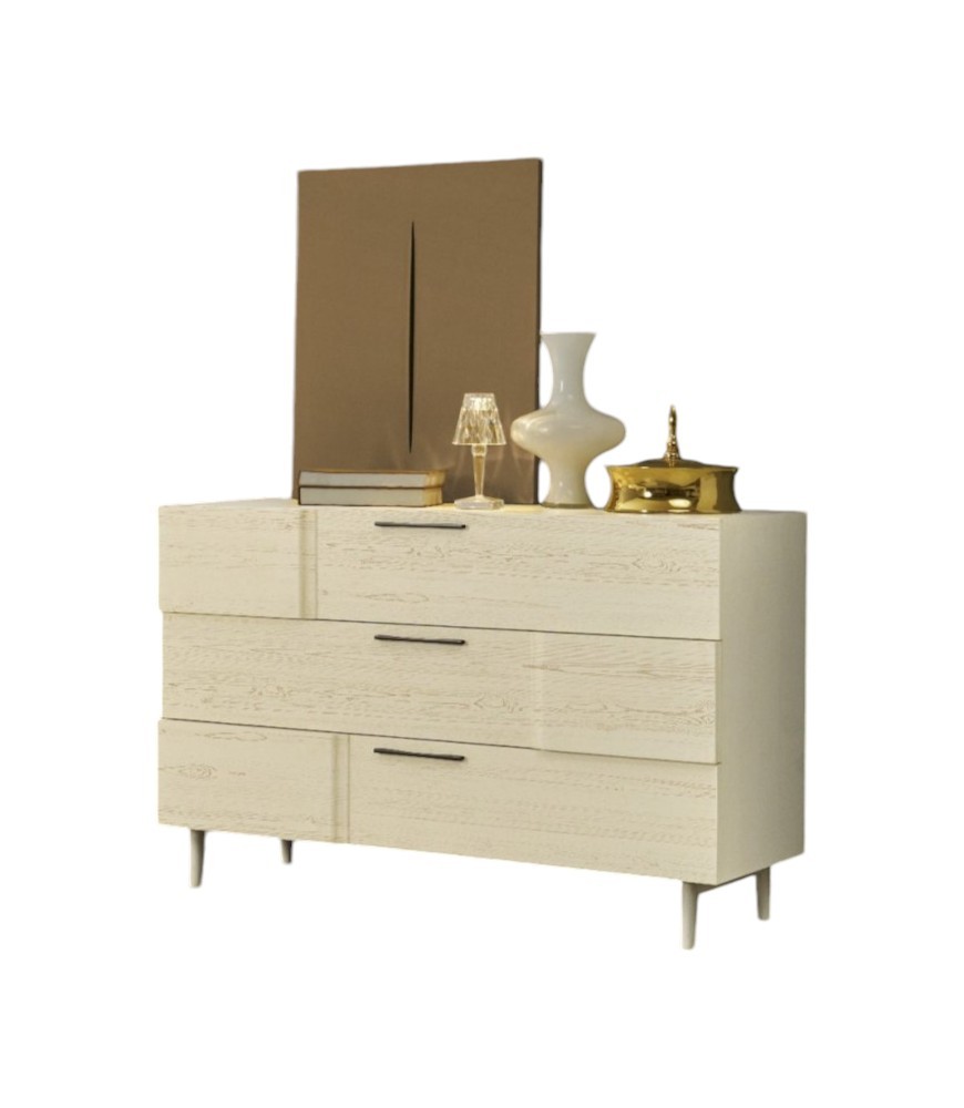 Cassettiera in stile contemporaneo adatta per riporre all'interno biancheria intima, funzionale e spaziosa che ti permetterà di risolvere i problemi di spazio grazie ai suoi 3 cassetti con guide ammortizzate. Elemento di arredo che conferisce un tocco di raffinatezza e calore grazie alla sua eleganza intramontabile che solo il rovere può offrire. L'elemento centrale di questa collezione è sicuramente il pannello sagomato applicato sui cassetti per creare un gioco armonioso tra i vari componenti.