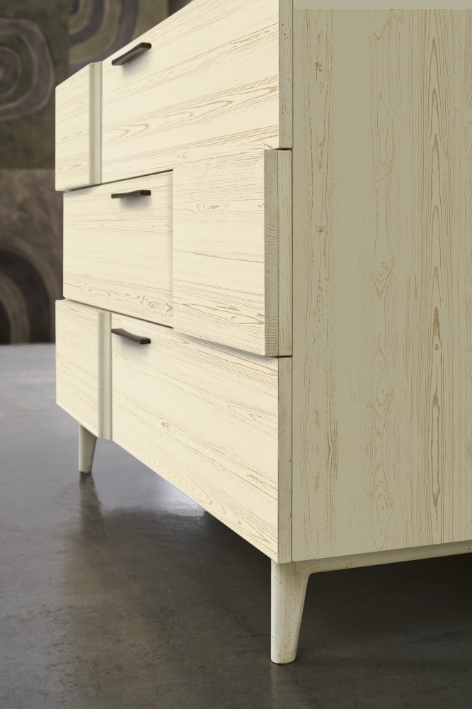 Cassettiera 3 cassetti legno rovere burro patinato nocciola 130x55x90
