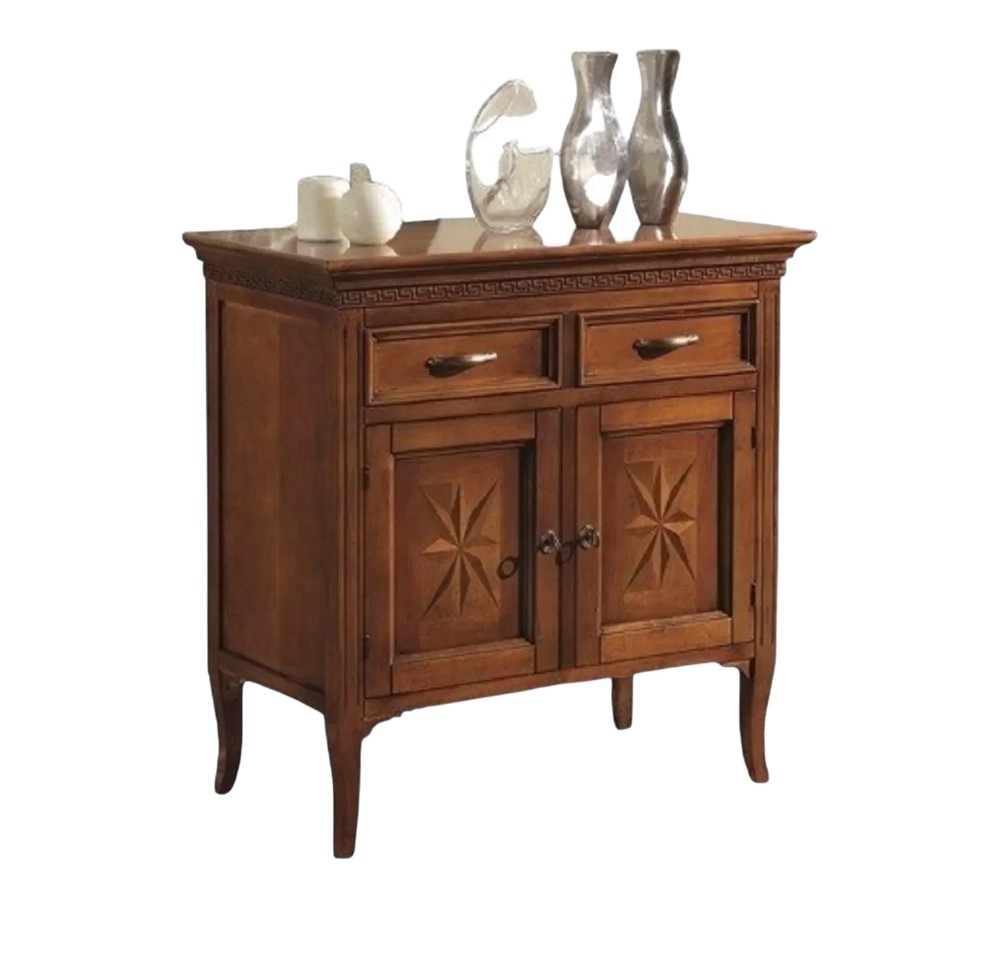 Credenza tradizionale classica 2 porte e 2 cassetti per il riordino di stoviglie e oggetti. Complemento d'arredo apprezzato per la sua solidità e capienza ma allo stesso tempo funzionale , adatta per creare un'impatto estetico unico nel suo genere in cui domina lo stile classico. Credenza dal design raffinato ideale per arredare con gusto la stanza del soggiorno o come mobile per l'entrata.