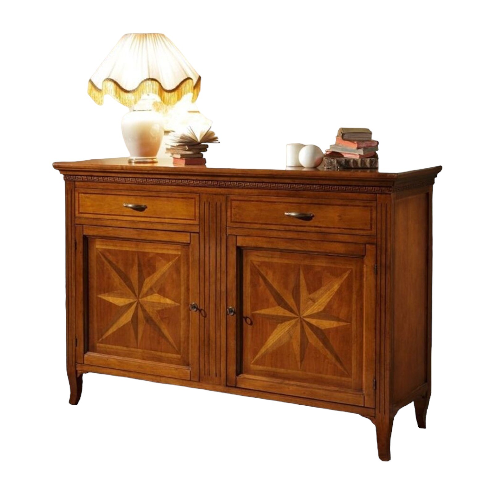 • MADIA CREDENZA IN LEGNO MASSELLO 2 PORTE 2 CASSETTI CON INTARSIO L.160 P.55 H.112