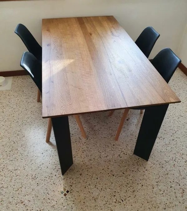 TAVOLO FISSO IN LEGNO ROVERE NODATO 250x100 SPESSORE 4 cm GAMBE METALLO (1672)