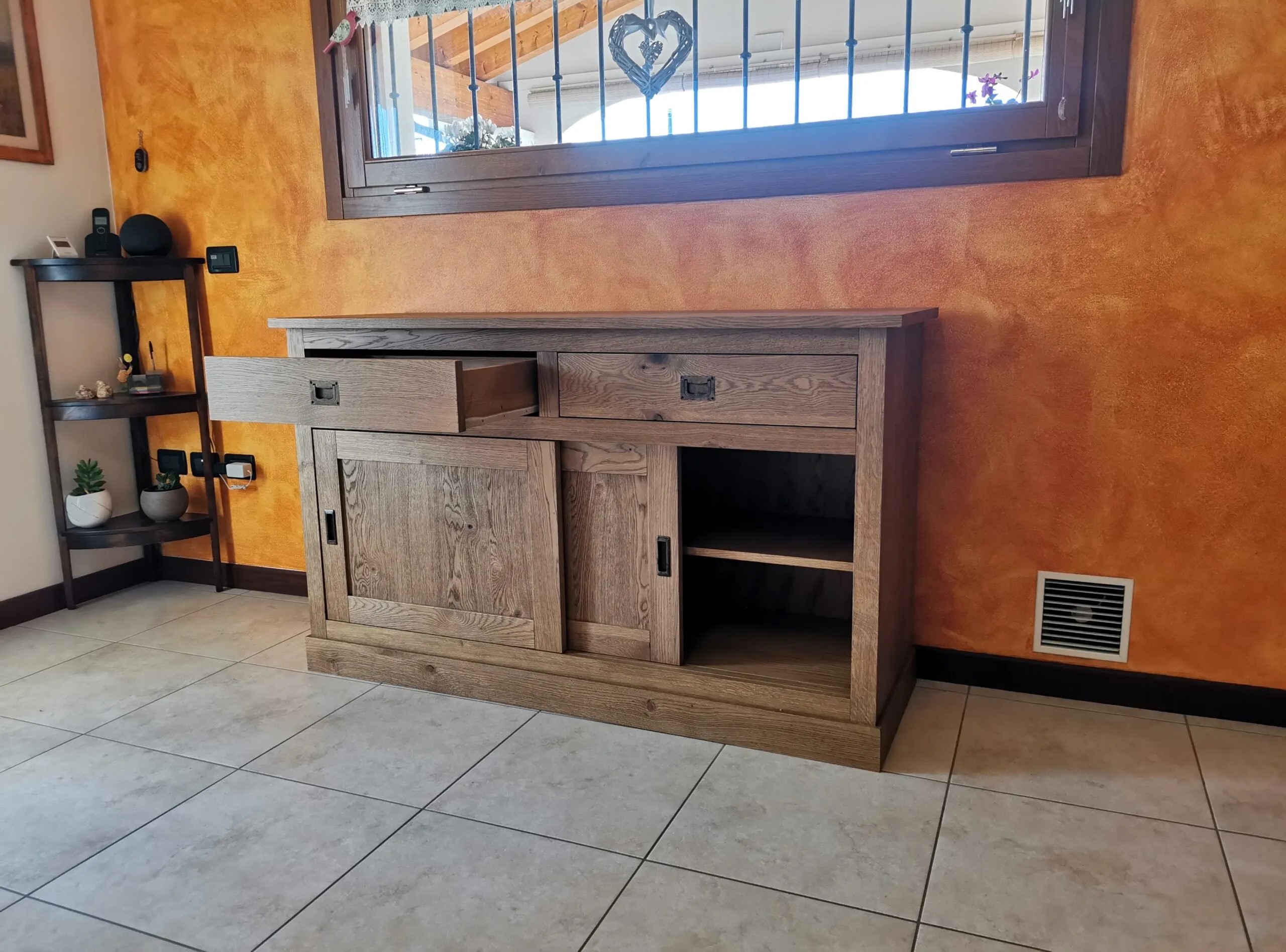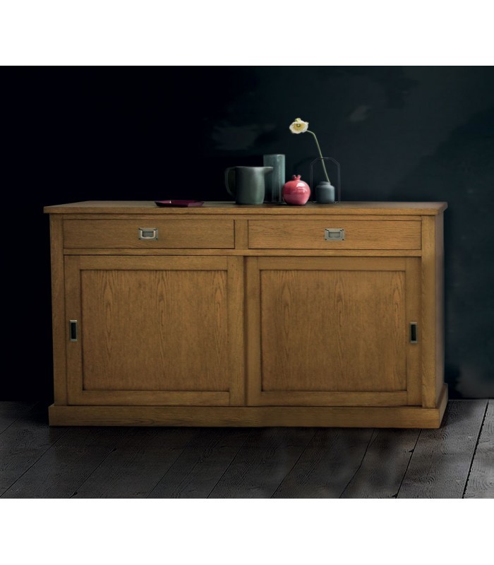 MADIA CREDENZA 2 ANTE SCORREVOLI 2 CASSETTI ROVERE NODATO 150X50X90H (1641)