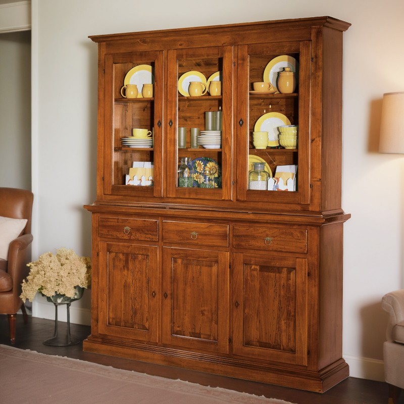 CRISTALLIERA 3 PORTE IN LEGNO NOCE ARTE POVERA 172x51x226 (616+617)